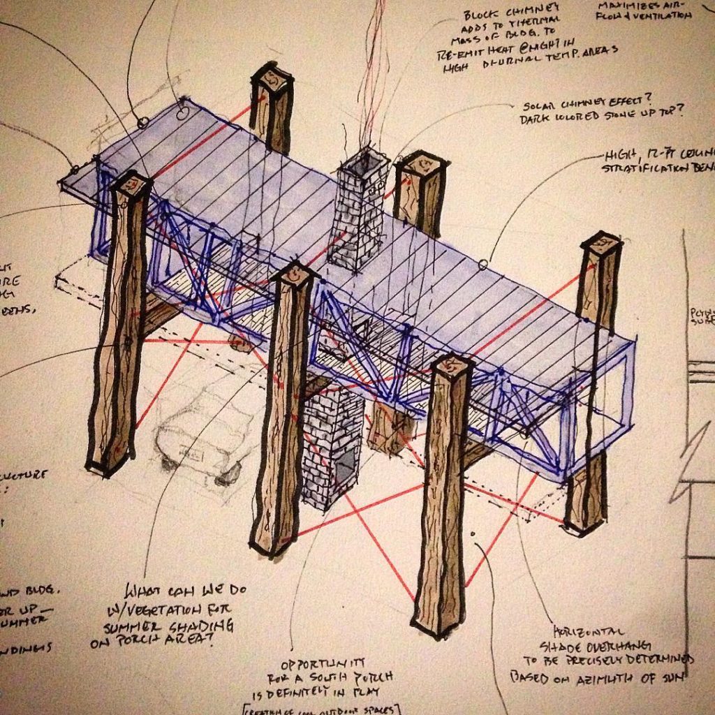 When you sketch, there’s a direct link between mind and hand. You have a thought, and it’s immediately manifested in the physical world. And you can riff on it. It’s an excellent way to figure stuff out – to test possibilities – to quickly discard ideas that don’t work – to explore. Sketching is like the jazz of architectural drawing. You think, make a mark, adapt, refine, draw over, transform. And it’s done quickly. When you really get caught up in it, your hand will struggle to keep up with your mind. Everything is stream of consciousness. You’re not concerned with making mistakes or getting things perfect. You just go. It’s wonderful.